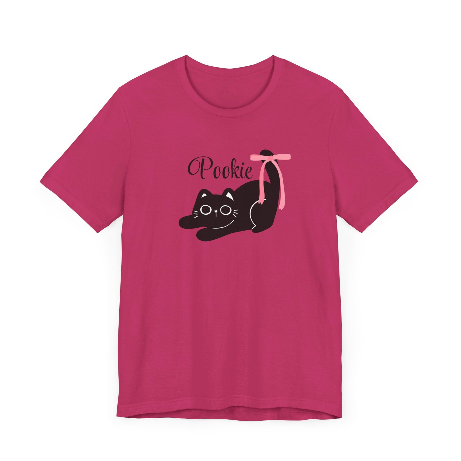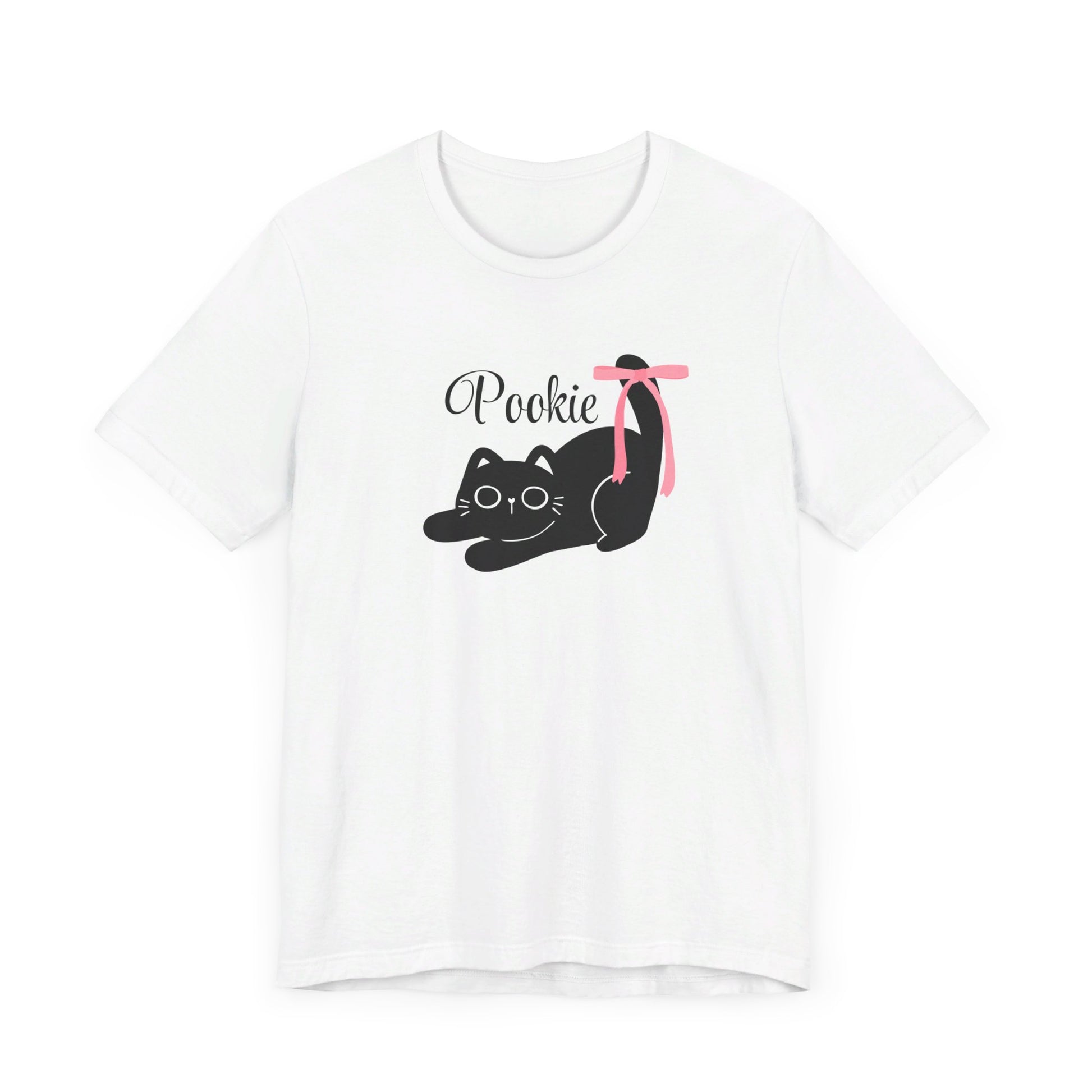 Pookie bear coquette style pink bow cat Unisex Jersey Short Sleeve Tee, great shirt for teens, birthdays, Christmas, and back to school